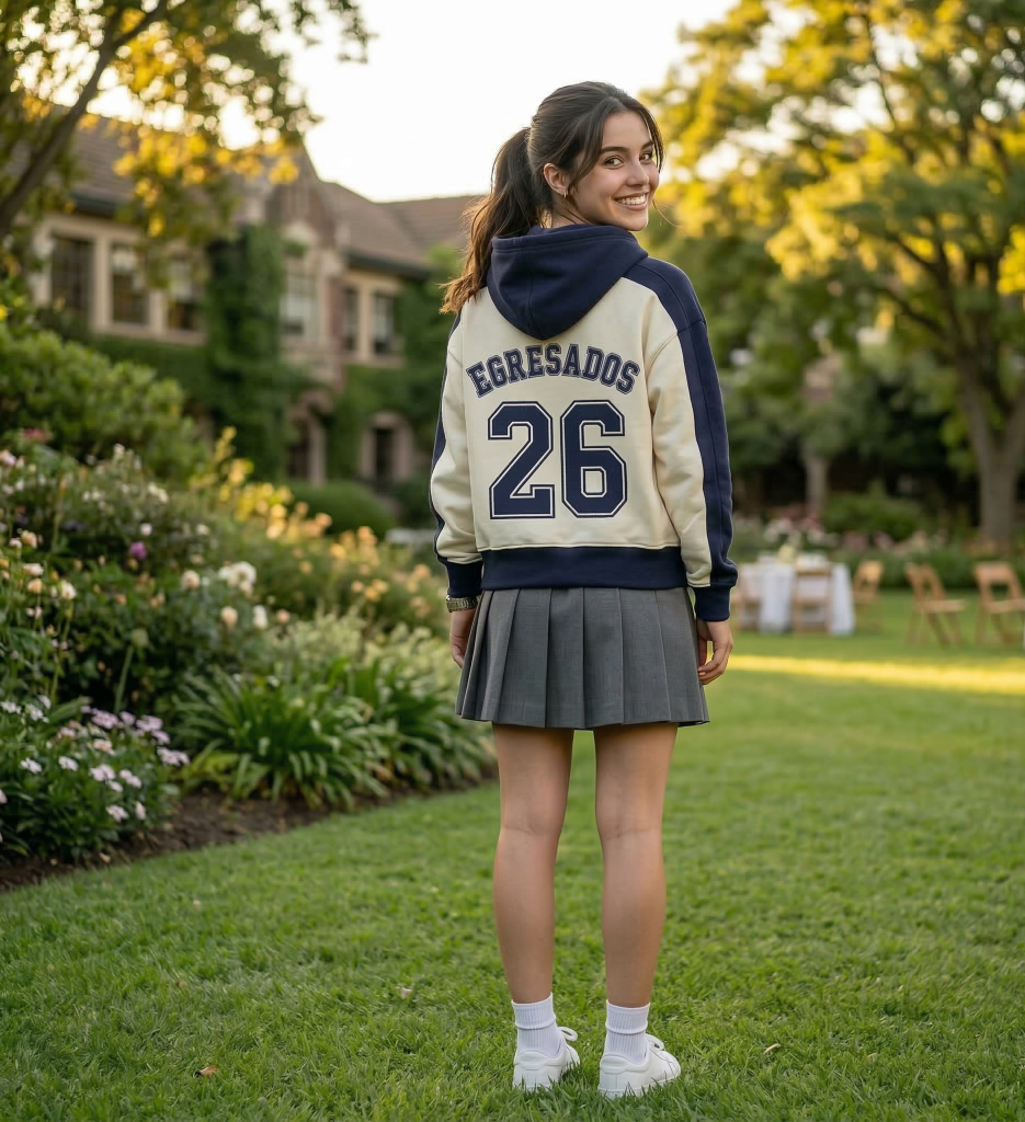 Cada curso puede elegir colores, tipografías y detalles para crear su buzo ideal.