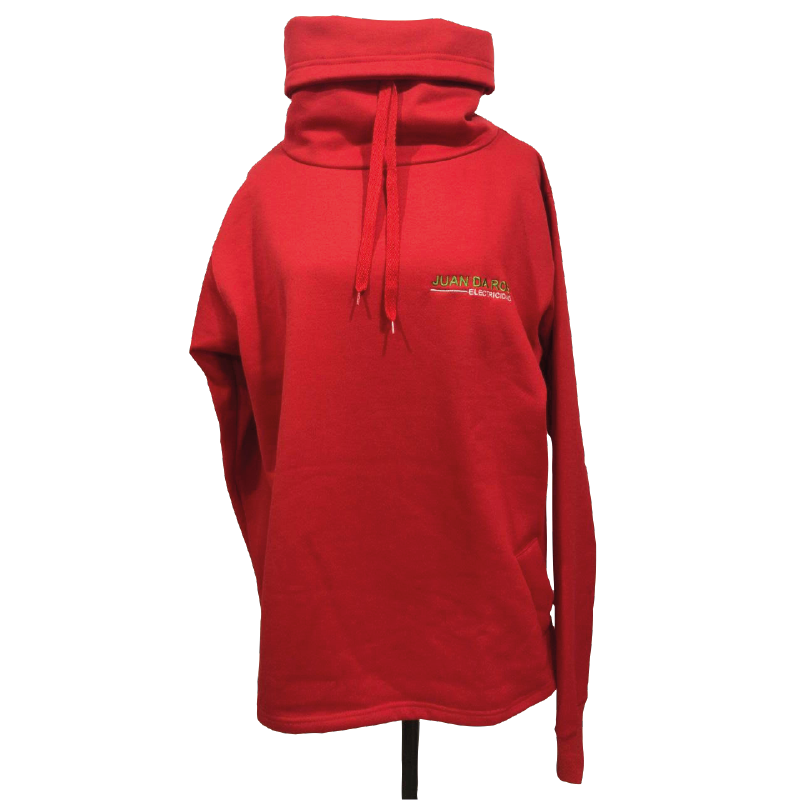 Algodón cuello alto, con bolsillos y bordado en frente.