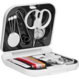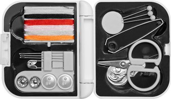 - Contiene tijeras, enhebrador, pinza, alfileres, botones, alfiler de gancho, agujas e hilos de colores.