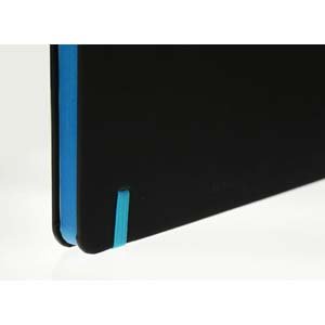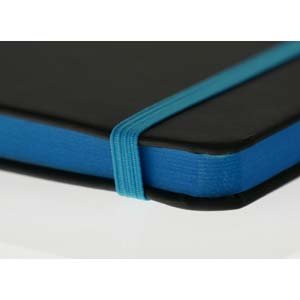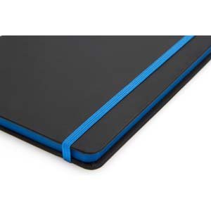 - Cuaderno A5 (21,5 x 15 cm.) Tapa dura de PU satín. Borde de hoja color azul francia.