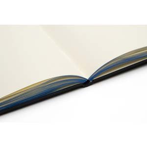 - 80 hojas lisas de 80 gramos. Encuadernación cosida. Cierre elástico y cinta marcadora color azul francia. En caja blanca de cartón.