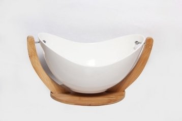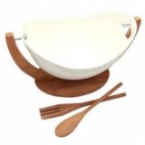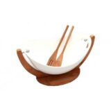 Ensaladera de ceramica con Soporte y Cubiertos de Bamboo.