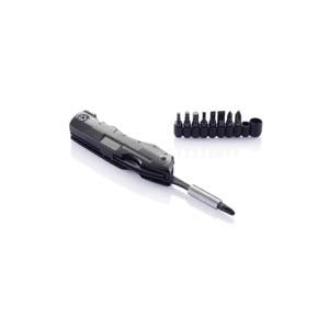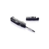 • Dispone de 8 funciones, es de acero inoxidable negro e incluye juego de 9 cabezales y funda Swiss Peak.