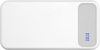 - Botón al costado que al oprimirlo una vez muestra el estado de carga de la Power Bank, 1 luz: 25% de energía, 2 luces: 50% de energía, 3 luces: 75% de energía, 4 luces: 100% de energía.