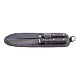 - Estuche holder: De cuero ecológico negro-Pespunteado en color blanco-Con broche de velcro.
