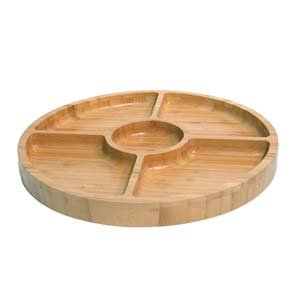 - Posee 5 divisiones, un compartimiento esférico central y cuatro equidistantes de forma trapezoidal para una mejor distribución de productos.